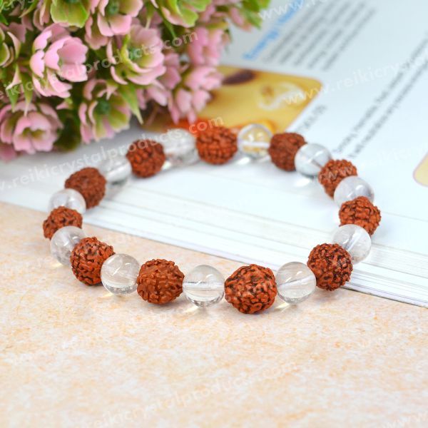 Stretchable Elastic Handmade Rudraksha with Clear Quartz Bracelet | Diameter : 6.3 cm. | Stone Size – 8 mm | Shape - Round | Charged By Reiki Grand Master & Vastu Expert | Pack of 1 pc