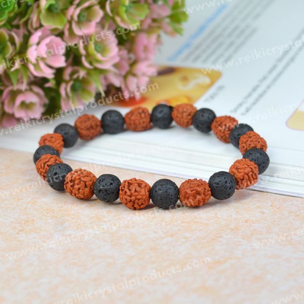 Stretchable Elastic Handmade Rudraksha with Lava Bracelet | Diameter : 6.3 cm. | Stone Size – 8 mm | Shape - Round | Charged By Reiki Grand Master & Vastu Expert | Pack of 1 pc
