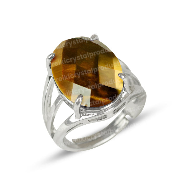 * Adjustable Natural Crystal Gemstone Ring.* A tiger's eye Ring is known for their striking golden to brown bands. This stone is often associated with protection, grounding, and clarity, promoting mental focus and confidence. Wearing a tiger's eye Ring is believed to enhance courage, balance emotions, and attract good fortune while providing a shield against negative energies. Its unique, shimmering appearance adds a bold touch to any jewelry collection.* Energized by Experienced Reiki Grandmaster.* The Ring is made from Natural Stones so small holes, crack marks on the surface or inside the stones are often visible.