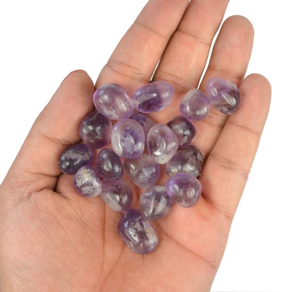 // Immerse yourself in the enchanting world of crystals with our Tumble Stones a collection of polished gemstones that fit snugly in the palm of your hand, each radiating its unique energy and beauty.// Versatile Uses: Reiki Crystal Products Amethyst African Tumbles Stone Set can be used for meditation, crystal grids, energy work, or simply as beautiful decorative accents. Their versatility makes them a delightful addition to your spiritual practice.// Natural Beauty: Amethyst African Tumble Stones showcase the natural beauty of crystals, enhanced by their smooth, polished surfaces. Each stone is a unique creation, reflecting the colors, patterns, and energies of the earth.// Pocket-Sized Energizers: Compact and portable, these stones are perfect for carrying in your pocket, purse, or pouch, allowing you to carry the positive energy of crystals wherever you go.