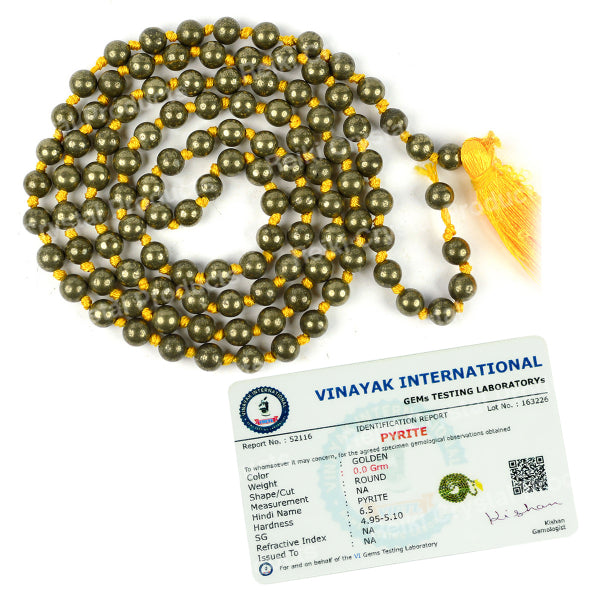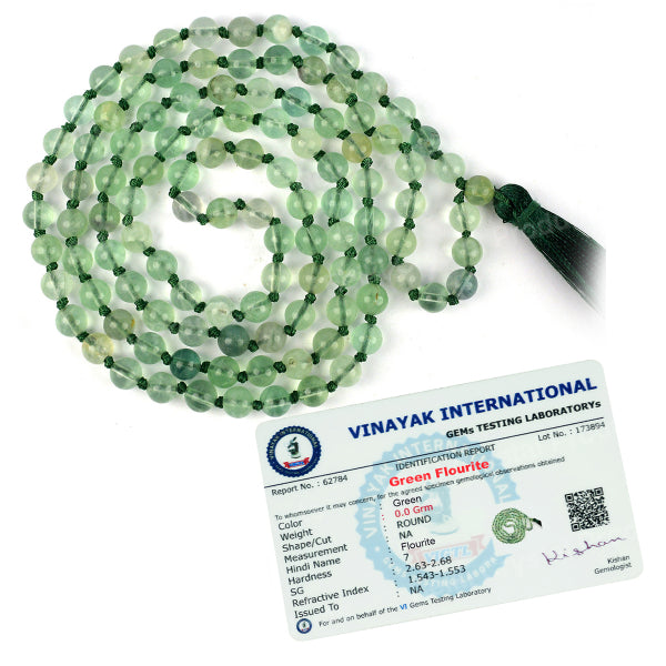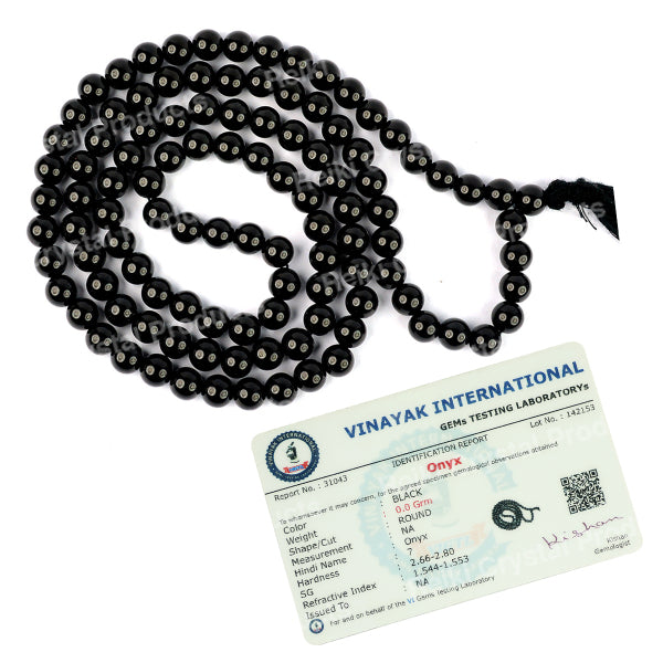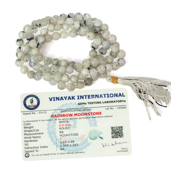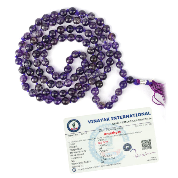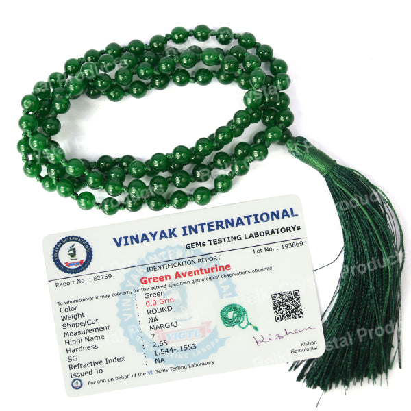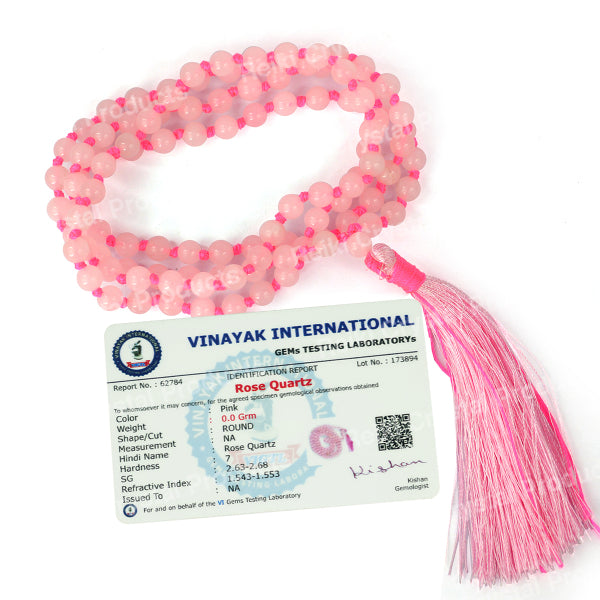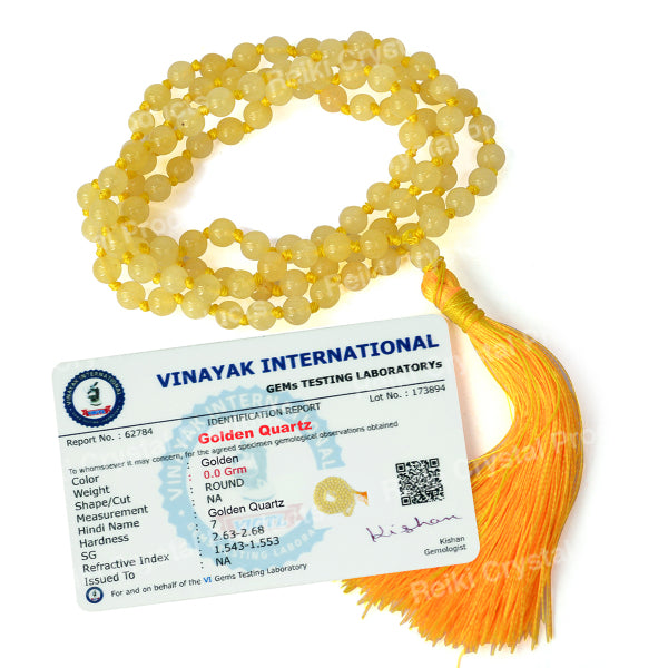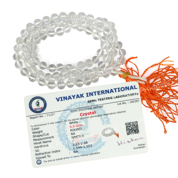 * Natural Handmade Crystal Stone Mala/Necklace | Length : 66 cm | Number of Beads : 108 | Shape : Round Beads | Stone Size : 6 mm. * Energized by Experienced Reiki Grandmaster.* The Mala is made from natural stones so small holes, crack marks on the surface or inside the stones are often visible.* Note: The Crystal Stone Mala is a spiritual accessory, and its perceived impact is often rooted in personal belief and intention.