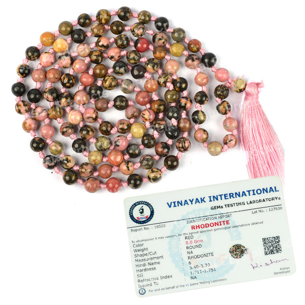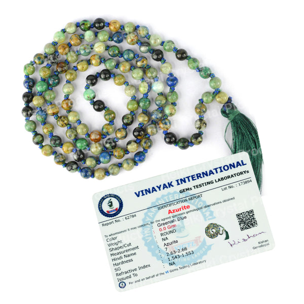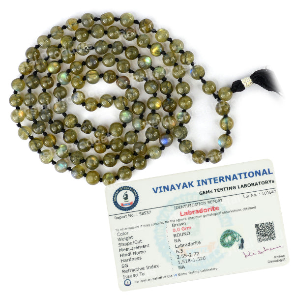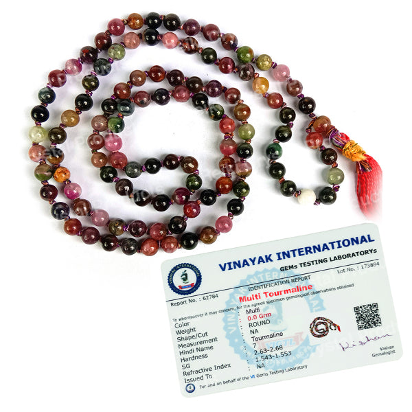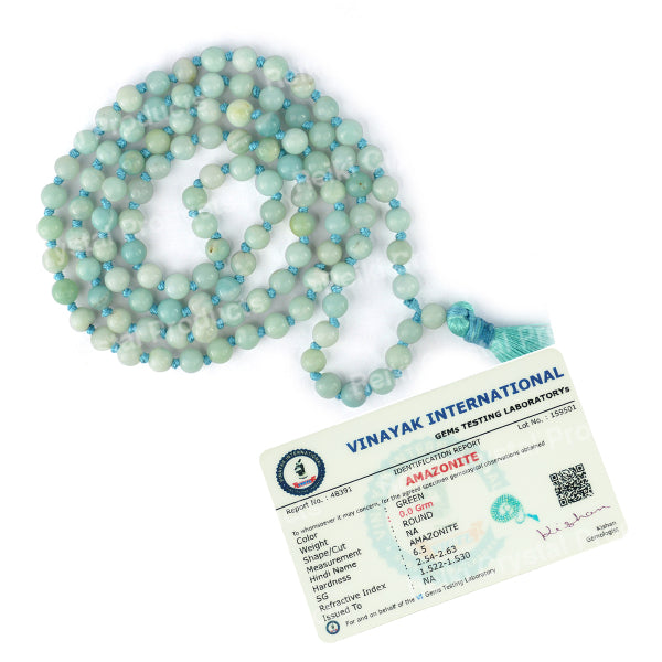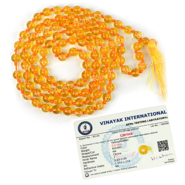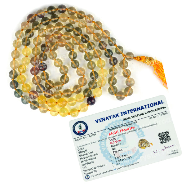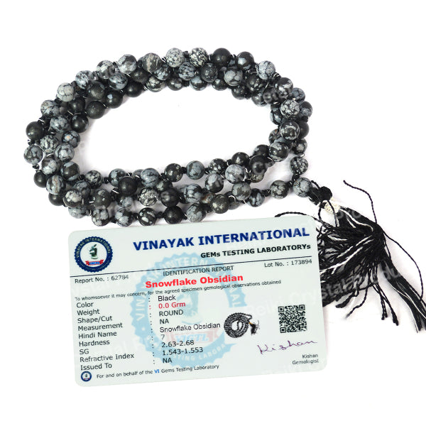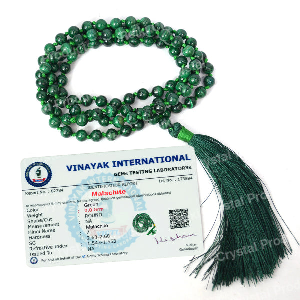 * Natural Handmade Crystal Stone Mala/Necklace | Length : 66 cm | Number of Beads : 108 | Shape : Round Beads | Stone Size : 6 mm. * Energized by Experienced Reiki Grandmaster.* The Mala is made from natural stones so small holes, crack marks on the surface or inside the stones are often visible.* Note: The Crystal Stone Mala is a spiritual accessory, and its perceived impact is often rooted in personal belief and intention.