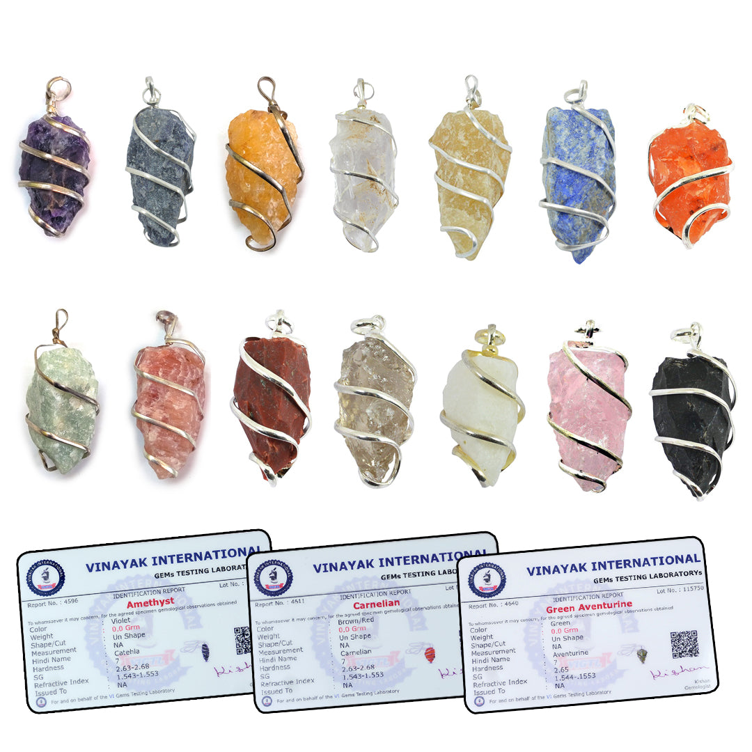 Natural Crystal / Stone AAA Quality Wire Pendant | Length : 30-35 mm | Width - 10-15 mm . Charged By Reiki Grandmaster & Vastu Expert
