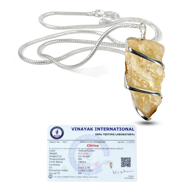 * Natural Crystal Stone Pendant | Length: 30-35 mm. | Width: 10-15 mm.* A citrine Pendant is known for their warm yellow to golden hues. Citrine is often associated with prosperity, abundance, and positivity, making it a popular choice for those looking to attract wealth and success. It's believed to enhance creativity, motivation, and confidence while promoting a cheerful and optimistic outlook.* Energized by Experienced Reiki Grandmaster.* The pendant is made from Natural Stones so small holes, crack marks on the surface or inside the stones are often visible.