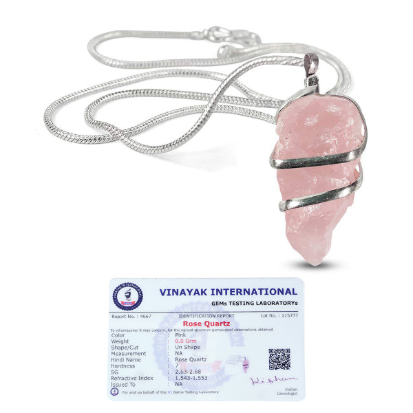 * A rose quartz pendant symbolizing love, compassion, and emotional healing. It is often worn to attract love, foster self-love, and promote harmony in relationships. The soft pink color adds a soothing and gentle energy to its wearer.