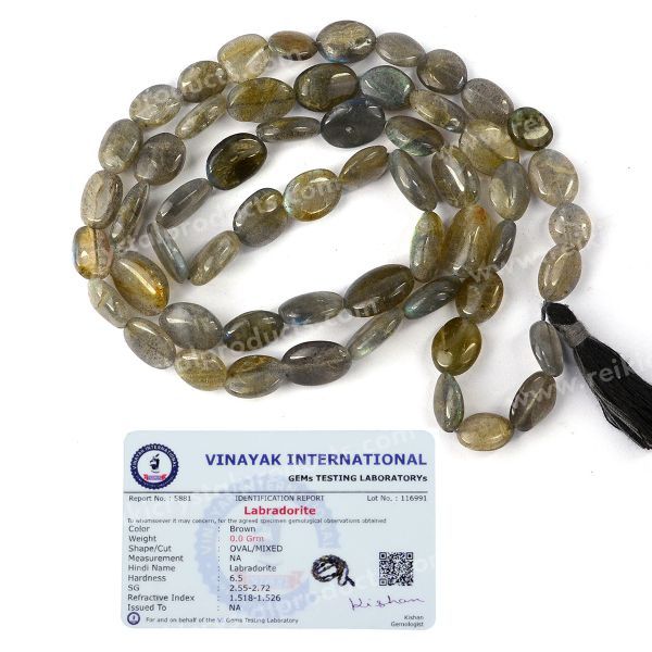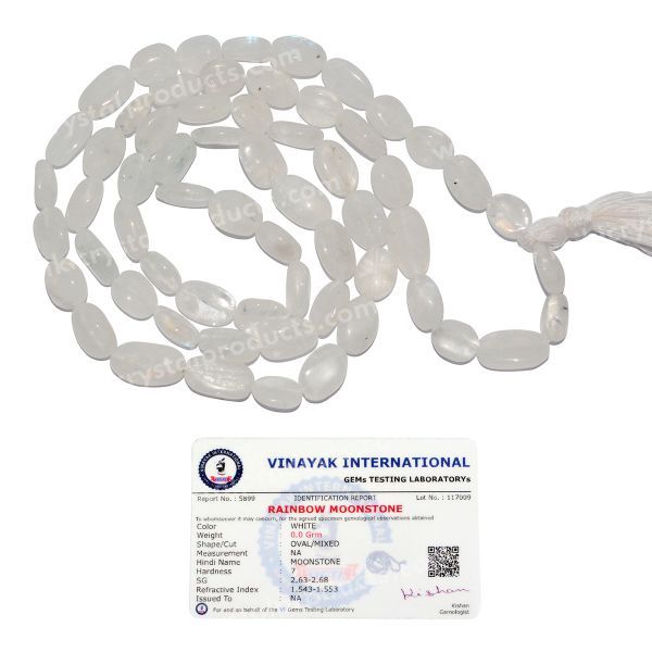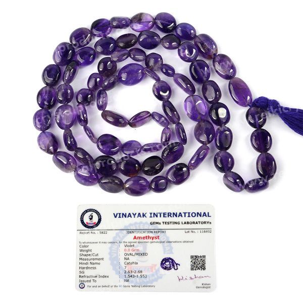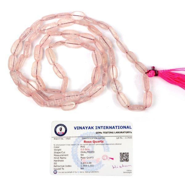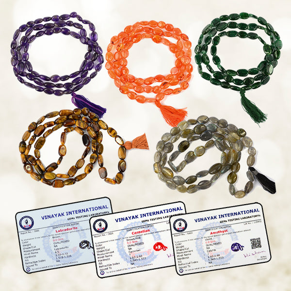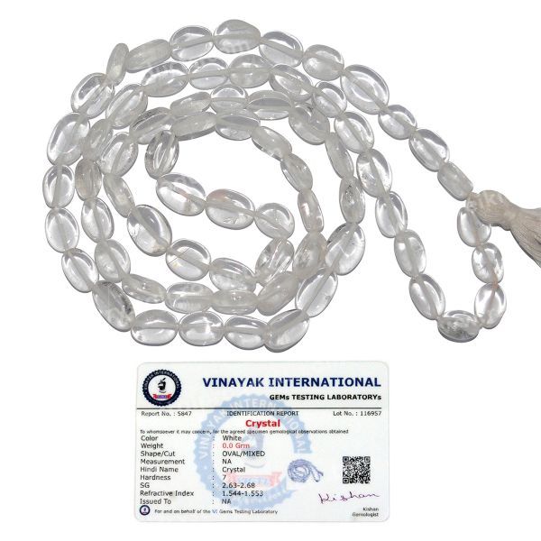 Hand Made Natural Certified Crystal Stone Oval Bead Mala / Necklace | Length: 660 mm. | Shape: Oval | Charged By Reiki Grand Master & Vastu Expert