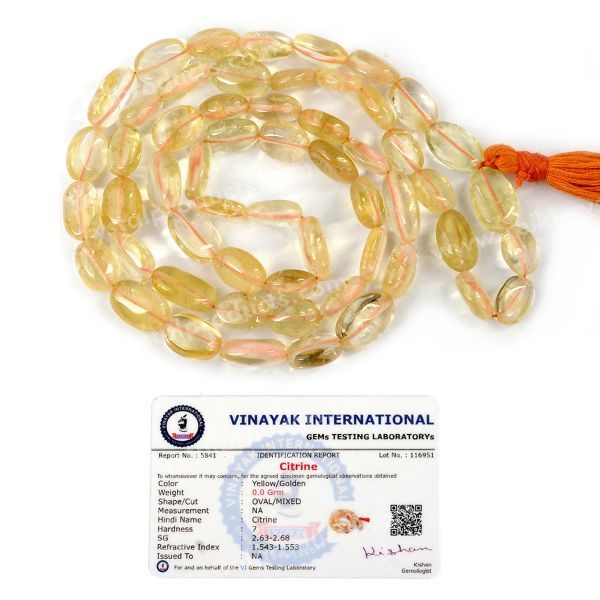 * Hand Made Natural Crystal Stone Citrine Mala / Necklace | Length : 66 cm. | Shape - Oval Beads