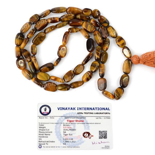 * A tiger eye mala is known for their striking golden to brown bands. This stone is often associated with protection, grounding, and clarity, promoting mental focus and confidence. Wearing a tiger's eye bracelet is believed to enhance courage, balance emotions, and attract good fortune while providing a shield against negative energies. Its unique, shimmering appearance adds a bold touch to any jewelry collection.