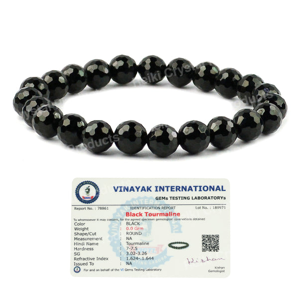 Stretchable Elastic Handmade Natural Certified Black Tourmaline Bracelet | Diameter : 6.3 cm. | Stone Size - 8 mm Diamond Cut Beads | Charged By Reiki Grand Master & Vastu Expert