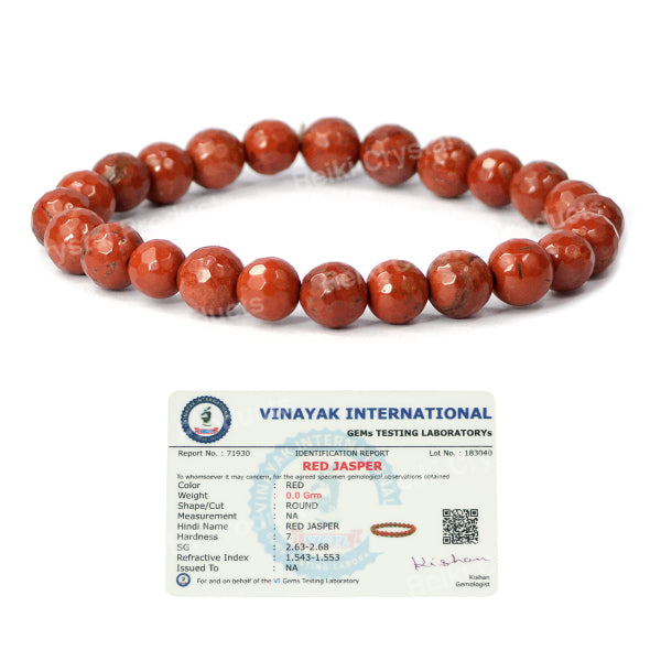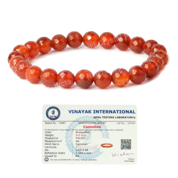 Stretchable Elastic Handmade Natural Certified Carnelian Bracelet | Diameter : 6.3 cm. | Stone Size - 8 mm Diamond Cut Beads | Charged By Reiki Grand Master & Vastu Expert