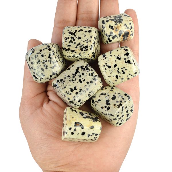 // Immerse yourself in the enchanting world of crystals with our Tumble Stones a collection of polished gemstones that fit snugly in the palm of your hand, each radiating its unique energy and beauty.// Versatile Uses: Reiki Crystal Products Dalmatian Jasper Tumbles Stone Set can be used for meditation, crystal grids, energy work, or simply as beautiful decorative accents. Their versatility makes them a delightful addition to your spiritual practice.// Natural Beauty: Dalmatian Jasper Tumble Stones showcase the natural beauty of crystals, enhanced by their smooth, polished surfaces. Each stone is a unique creation, reflecting the colors, patterns, and energies of the earth.// Pocket-Sized Energizers: Compact and portable, these stones are perfect for carrying in your pocket, purse, or pouch, allowing you to carry the positive energy of crystals wherever you go.