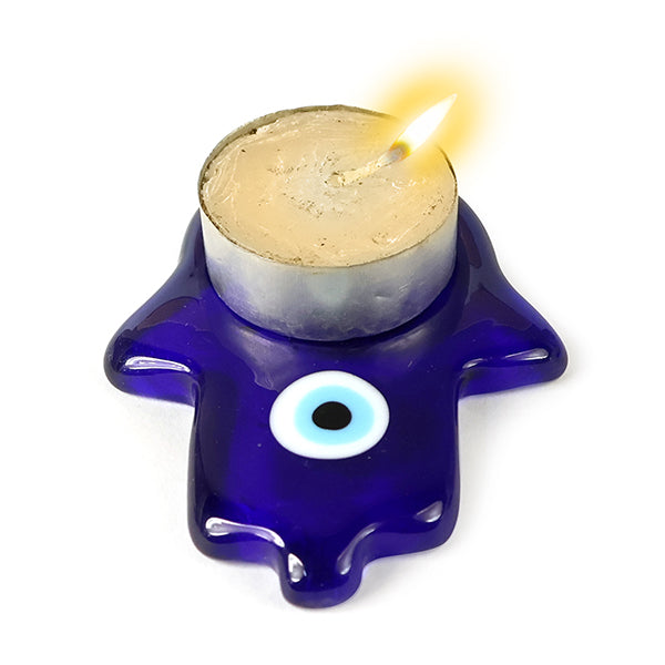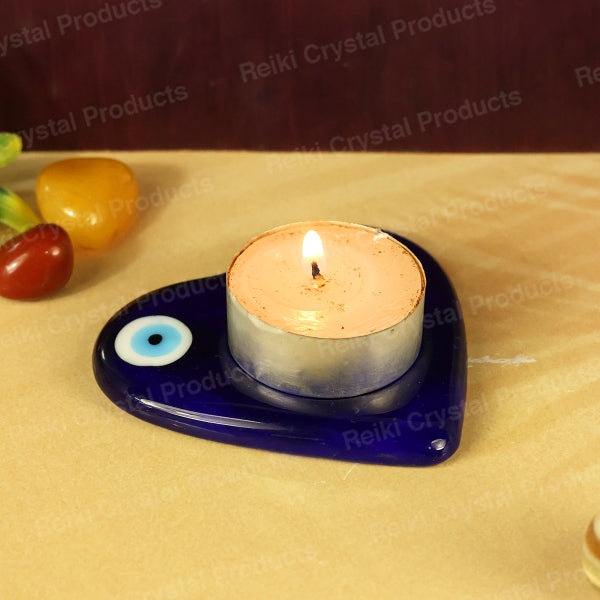 * Evil Eye Candle Stand / Holder Size 8.5 x 7 cm* Elegant Design: Crafted with exquisite attention to detail, these evil eye candle holders add a touch of sophistication to any home decor.* Durable Construction: Made from high-quality glass materials, ensuring long-lasting beauty and functionality.* Easy to Maintain: Simple to clean and care for, allowing you to enjoy their charm for years to come.* Thoughtful Gift: Perfect for diwali, housewarming, anniversaries, or as a treat for yourself or loved ones.