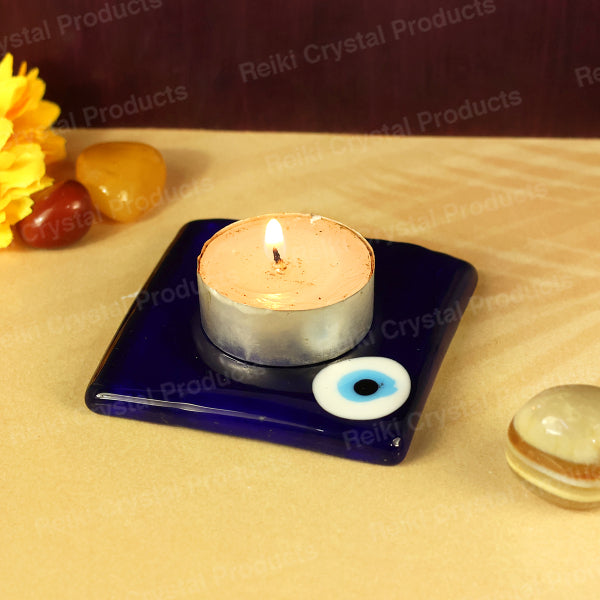 * Evil Eye Candle Stand / Holder Size 7.5 x 7.5 cm* Elegant Design: Crafted with exquisite attention to detail, these evil eye candle holders add a touch of sophistication to any home decor.* Durable Construction: Made from high-quality glass materials, ensuring long-lasting beauty and functionality.* Easy to Maintain: Simple to clean and care for, allowing you to enjoy their charm for years to come.* Thoughtful Gift: Perfect for diwali, housewarming, anniversaries, or as a treat for yourself or loved ones.