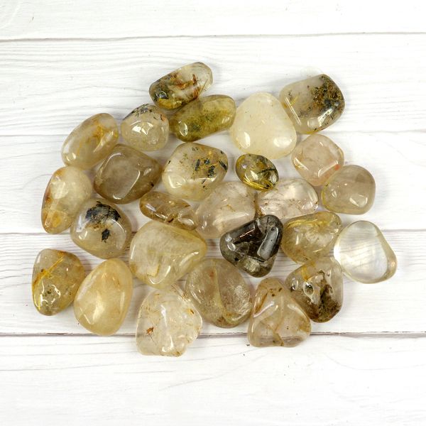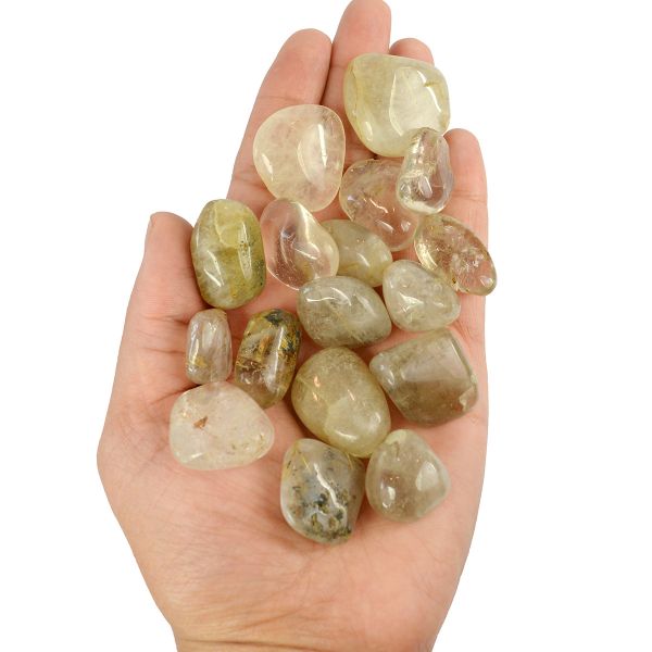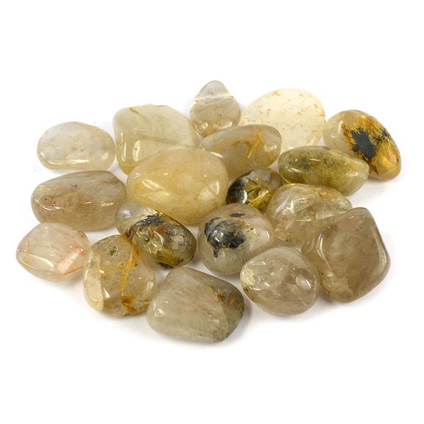 // Immerse yourself in the enchanting world of crystals with our Tumble Stones a collection of polished gemstones that fit snugly in the palm of your hand, each radiating its unique energy and beauty.// Versatile Uses: Reiki Crystal Products Golden Rutile Quartz Tumbles Stone Set can be used for meditation, crystal grids, energy work, or simply as beautiful decorative accents. Their versatility makes them a delightful addition to your spiritual practice.// Natural Beauty: Golden Rutile Quartz Tumble Stones showcase the natural beauty of crystals, enhanced by their smooth, polished surfaces. Each stone is a unique creation, reflecting the colors, patterns, and energies of the earth.// Pocket-Sized Energizers: Compact and portable, these stones are perfect for carrying in your pocket, purse, or pouch, allowing you to carry the positive energy of crystals wherever you go.