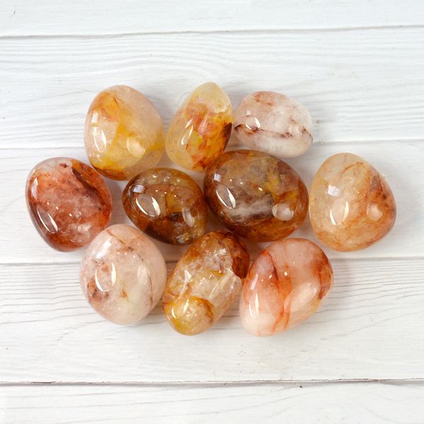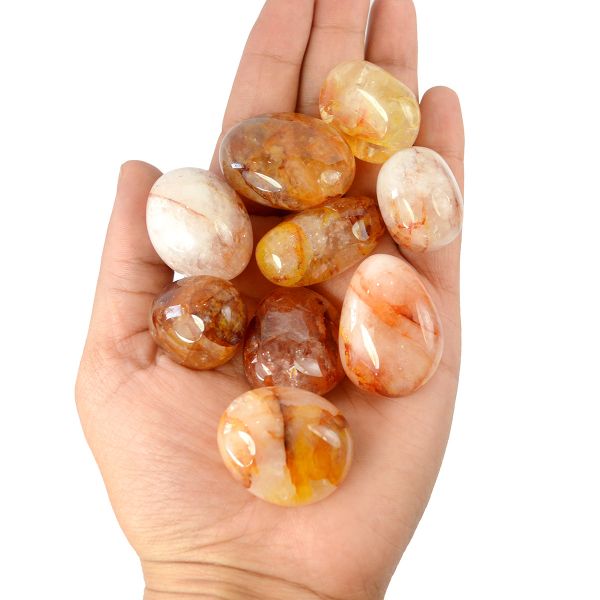 // Immerse yourself in the enchanting world of crystals with our Tumble Stones a collection of polished gemstones that fit snugly in the palm of your hand, each radiating its unique energy and beauty.// Versatile Uses: Reiki Crystal Products Hematoid Quartz Tumbles Stone Set can be used for meditation, crystal grids, energy work, or simply as beautiful decorative accents. Their versatility makes them a delightful addition to your spiritual practice.// Natural Beauty: Hematoid Quartz Tumble Stones showcase the natural beauty of crystals, enhanced by their smooth, polished surfaces. Each stone is a unique creation, reflecting the colors, patterns, and energies of the earth.// Pocket-Sized Energizers: Compact and portable, these stones are perfect for carrying in your pocket, purse, or pouch, allowing you to carry the positive energy of crystals wherever you go.