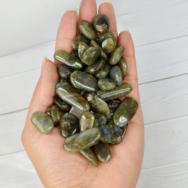 // Immerse yourself in the enchanting world of crystals with our Tumble Stones a collection of polished gemstones that fit snugly in the palm of your hand, each radiating its unique energy and beauty.// Versatile Uses: Reiki Crystal Products Labradorite Tumbles Stone Set can be used for meditation, crystal grids, energy work, or simply as beautiful decorative accents. Their versatility makes them a delightful addition to your spiritual practice.// Natural Beauty: Labradorite Tumble Stones showcase the natural beauty of crystals, enhanced by their smooth, polished surfaces. Each stone is a unique creation, reflecting the colors, patterns, and energies of the earth.// Pocket-Sized Energizers: Compact and portable, these stones are perfect for carrying in your pocket, purse, or pouch, allowing you to carry the positive energy of crystals wherever you go.