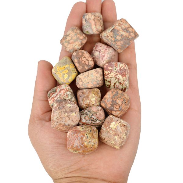 // Immerse yourself in the enchanting world of crystals with our Tumble Stones a collection of polished gemstones that fit snugly in the palm of your hand, each radiating its unique energy and beauty.// Versatile Uses: Reiki Crystal Products Leopard Skin Jasper Tumbles Stone Set can be used for meditation, crystal grids, energy work, or simply as beautiful decorative accents. Their versatility makes them a delightful addition to your spiritual practice.// Natural Beauty: Leopard Skin Jasper Tumble Stones showcase the natural beauty of crystals, enhanced by their smooth, polished surfaces. Each stone is a unique creation, reflecting the colors, patterns, and energies of the earth.// Pocket-Sized Energizers: Compact and portable, these stones are perfect for carrying in your pocket, purse, or pouch, allowing you to carry the positive energy of crystals wherever you go.