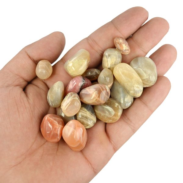 // Immerse yourself in the enchanting world of crystals with our Tumble Stones a collection of polished gemstones that fit snugly in the palm of your hand, each radiating its unique energy and beauty.// Versatile Uses: Reiki Crystal Products Multi Moonstone Tumbles Stone Set can be used for meditation, crystal grids, energy work, or simply as beautiful decorative accents. Their versatility makes them a delightful addition to your spiritual practice.// Natural Beauty: Multi Moonstone Tumble Stones showcase the natural beauty of crystals, enhanced by their smooth, polished surfaces. Each stone is a unique creation, reflecting the colors, patterns, and energies of the earth.// Pocket-Sized Energizers: Compact and portable, these stones are perfect for carrying in your pocket, purse, or pouch, allowing you to carry the positive energy of crystals wherever you go.