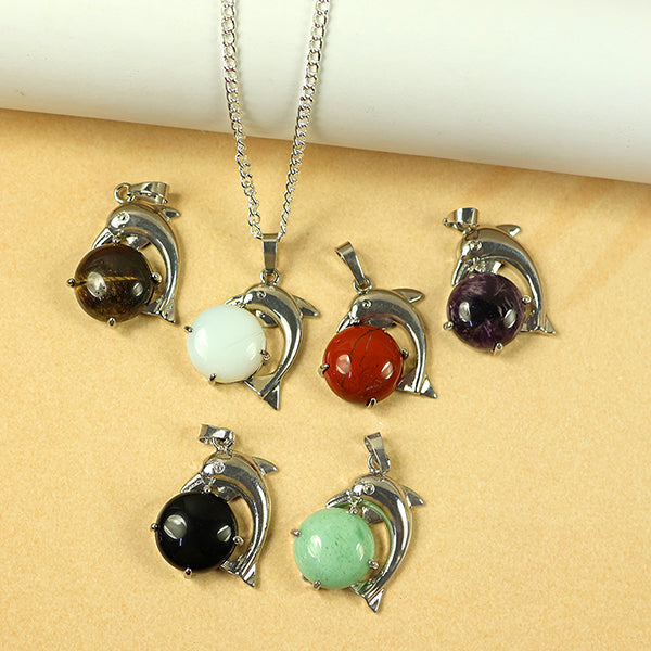 * Handmade Natural Crystal Stone Pendant | Length: 20-25 mm. | Width: 10-15 mm. Dolphin Shape.