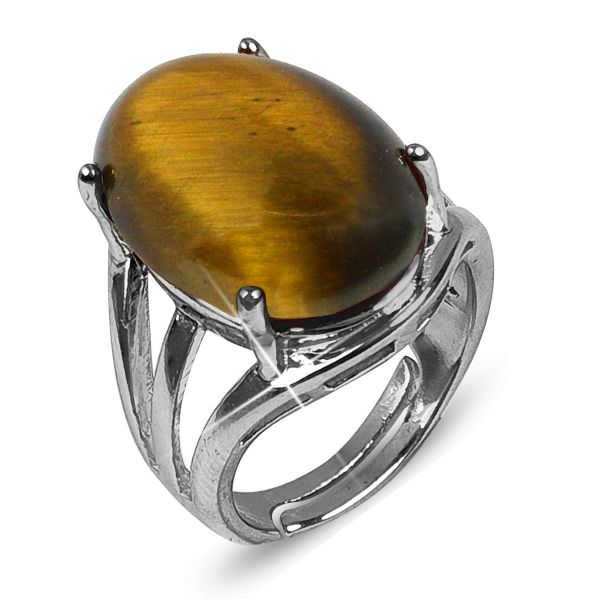 Tiger Eye Gemstone Adjustable White Metal Ring