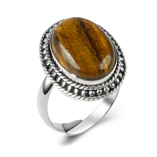 Tiger Eye Gemstone Adjustable White Metal Ring