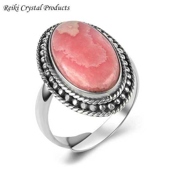 Rhodochrosite Gemstone Adjustable White Metal Ring