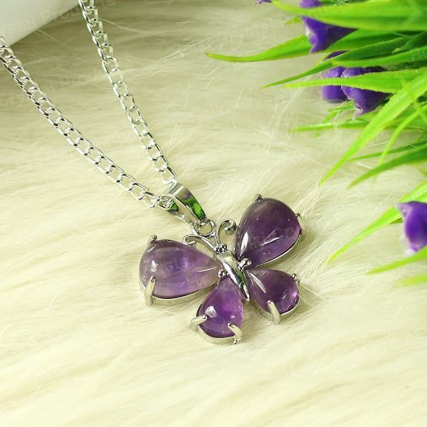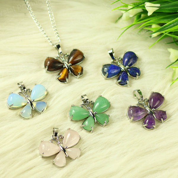 * Handmade Natural Crystal Stone Pendant | Length: 30 mm. | Width: 30 mm. Butterfly Shape.