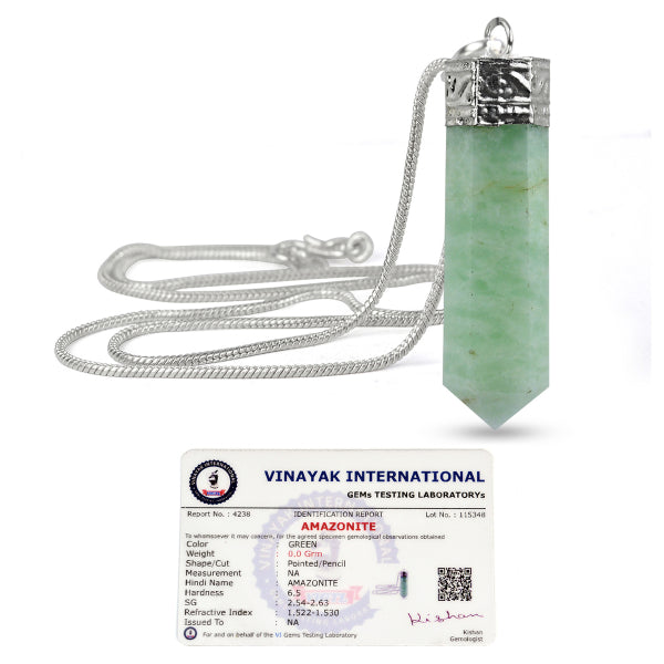 * Natural Crystal Stone Pendant | Length: 30-35 mm. | Width: 10-15 mm. | Pencil : Shape.* Amazonite is a captivating green to blue-green gemstone, often linked to harmony and emotional balance. Known as the "Stone of Courage and Truth," it is believed to enhance communication, reduce stress, and promote self-awareness. This soothing crystal is also thought to dispel negative energy, helping wearers stay calm and confident. Popular in jewelry and metaphysical practices, amazonite has been treasured for centuries for its beauty and healing properties.* Energized by Experienced Reiki Grandmaster.* The pendant is made from Natural Stones so small holes, crack marks on the surface or inside the stones are often visible.