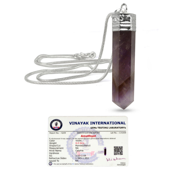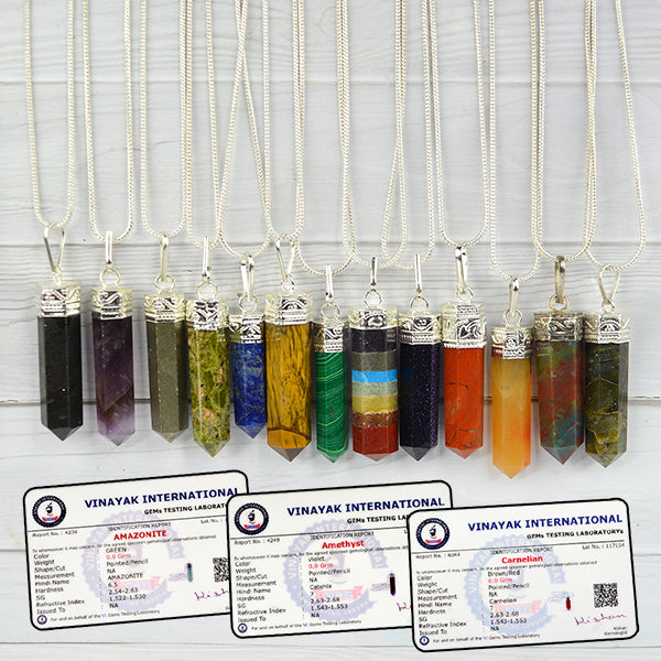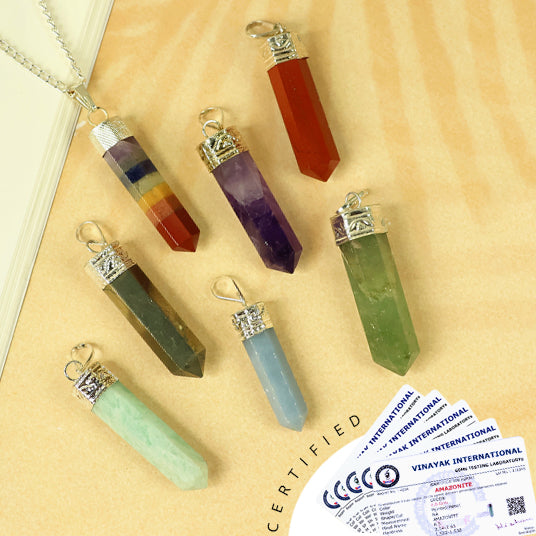 Natural Crystal / Stone AAA Quality Pencil Pendant | Length : 30-35 mm | Width - 10-15 mm . Charged By Reiki Grandmaster & Vastu Expert