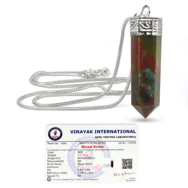 * Natural Crystal Stone Pendant | Length: 30-35 mm. | Width: 10-15 mm.* Bloodstone, also known as heliotrope, is a deep green gemstone speckled with red or brown inclusions, which are thought to resemble drops of blood. Known for its healing and protective properties, bloodstone is believed to promote physical vitality, courage, and emotional balance. It is often associated with purification and detoxification and supporting overall health. In spiritual practices, bloodstone is said to enhance intuition and encourage selflessness, helping individuals remain grounded and focused in challenging situations. * Energized by Experienced Reiki Grandmaster.* The pendant is made from Natural Stones so small holes, crack marks on the surface or inside the stones are often visible.