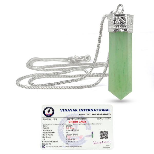 * Natural Crystal Stone Pendant | Length: 30-35 mm. | Width: 10-15 mm.* A green jade Pendant is crafted from jade, a stone revered for its beauty and symbolism of harmony, wisdom, and prosperity. Green jade is often associated with balance and emotional healing, promoting feelings of serenity and compassion. Wearing a green jade Pendant is believed to attract good luck, enhance personal growth, and foster meaningful relationships.* Energized by Experienced Reiki Grandmaster.* The pendant is made from Natural Stones so small holes, crack marks on the surface or inside the stones are often visible.