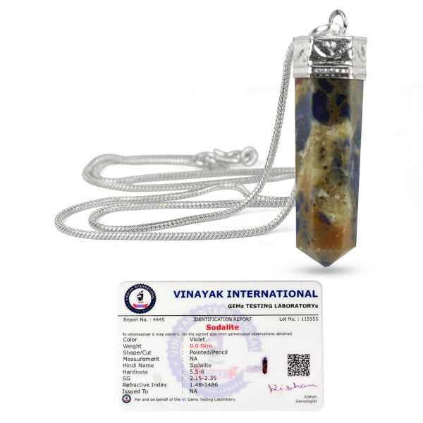 * Natural Crystal Stone Sodalite Pendant | Length : 30-35 mm | Width - 10-15 mm . Pendant Charged By Reiki Grand Master & Vastu Expert
