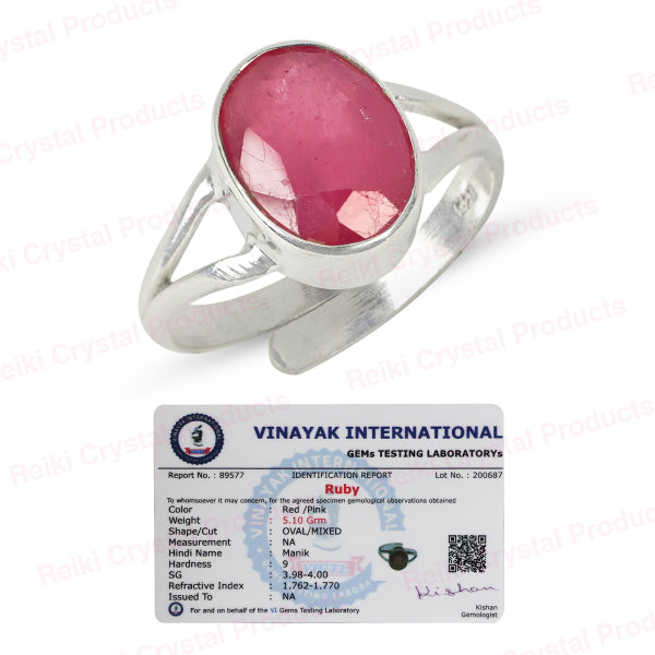 Pure Silver Setting: Crafted with pure silver, the setting of the ring exudes elegance and sophistication. The high-quality silver enhances the brilliance of the ruby, creating a captivating contrast that accentuates its beauty.