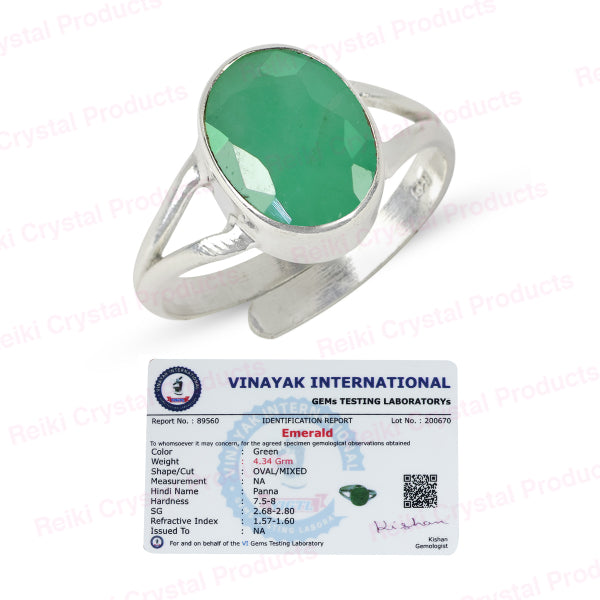 Description Certified Natural Emerald Adjustable Ring in Pure Silver: Timeless Beauty and Authenticity