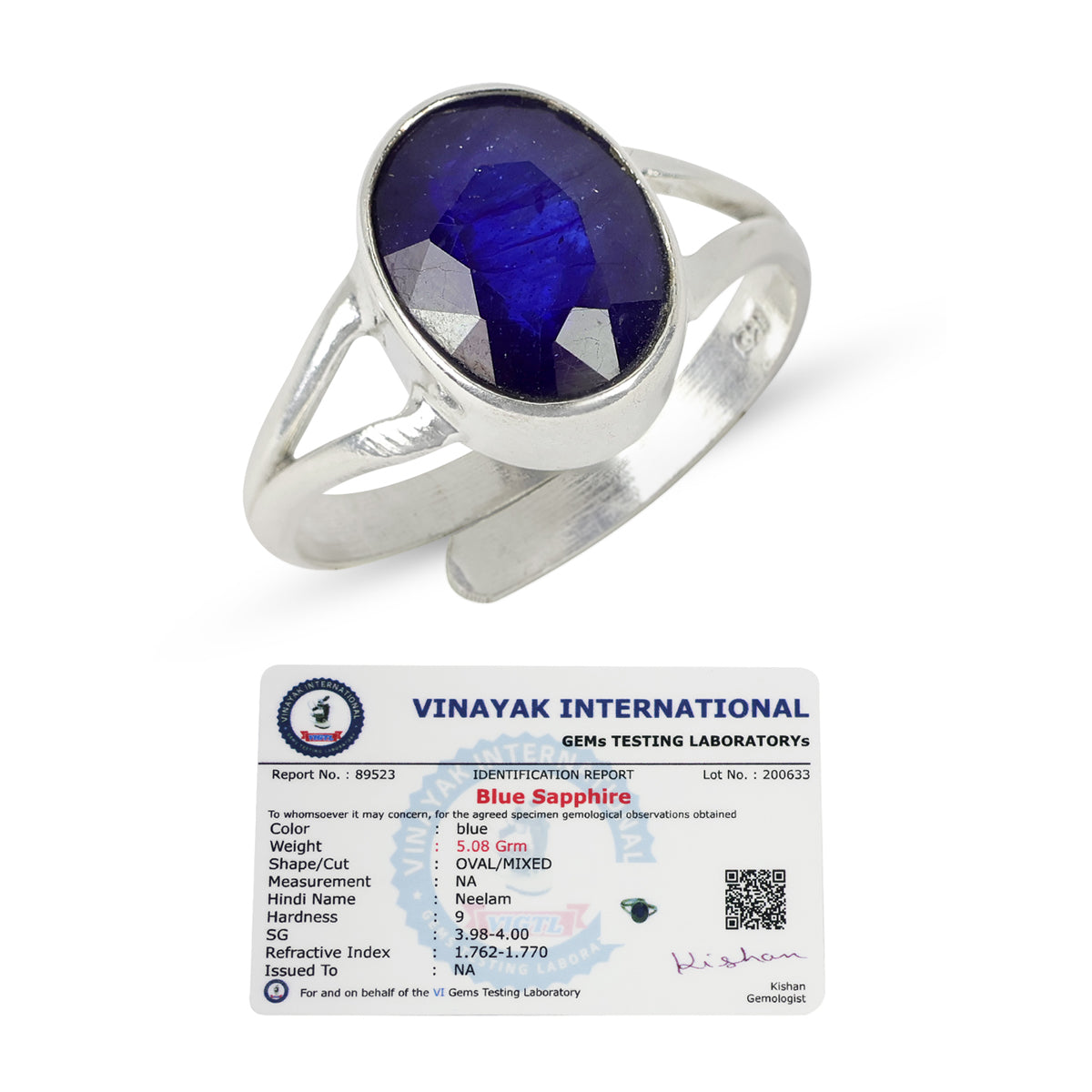 Pure Silver Setting: Crafted with pure silver, the setting of the ring exudes elegance and sophistication. The high-quality silver enhances the brilliance of the blue sapphire, creating a captivating contrast that catches the eye.