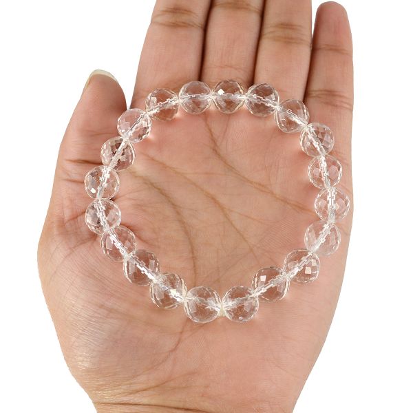 * Stretchable Elastic Handmade Natural Crystal Stone Bracelet | Diameter: 6.3 cm. | Stone Size - 10 mm. Faceted Beads.* Energized by Experienced Reiki Grandmaster.* The Bracelet is made from natural stones so small holes, crack marks on the surface or inside the stones are often visible.* Note: The Crystal Stone Bracelet is a spiritual accessory, and its perceived impact is often rooted in personal belief and intention.