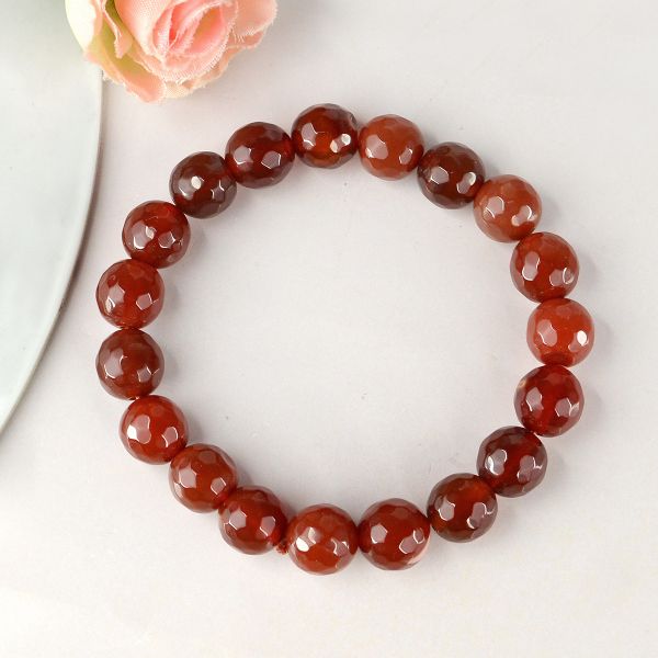 * Stretchable Elastic Handmade Carnelian Bracelet | Diameter : 6.3 cm. | Stone Size - 12 mm Diamond Cut | Shape : Round Natural