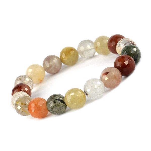 * Stretchable Elastic Handmade Multi Rutile Quartz Bracelet | Diameter : 6.3 cm. | Stone Size - 12 mm Diamond Cut | Shape : Round