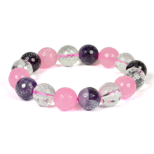*Stretchable Elastic Handmade Natural Crystal Stone Bracelet | Diameter: 6.3 cm. | Stone Size - 12 mm. Faceted Beads.