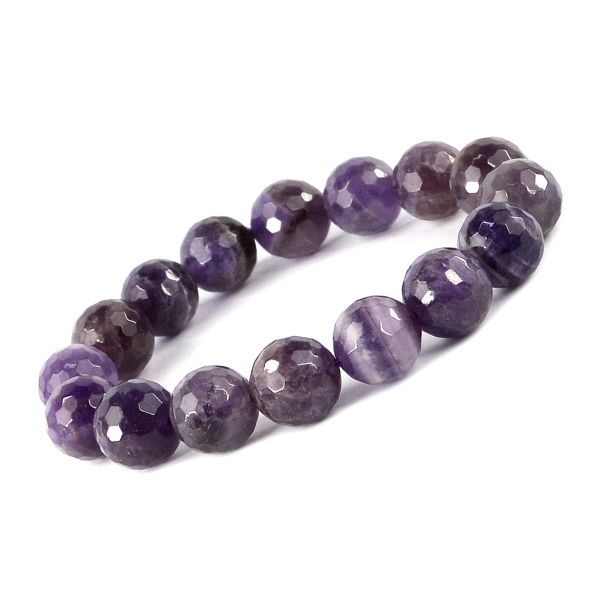 * Stretchable Elastic Handmade Natural Amethyst Bracelet | Diameter: 6.3 cm. | Stone Size - 12 mm. Faceted Beads