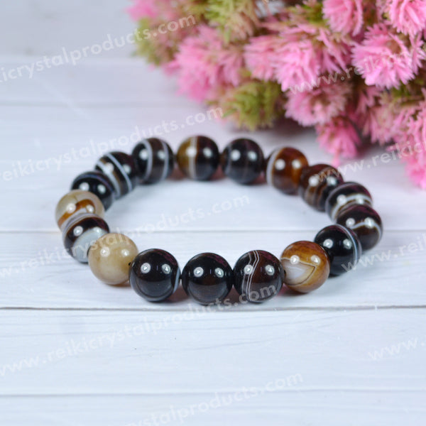 * Stretchable Elastic Handmade Sulemani Hakik Bracelet | Diameter : 6.3 cm. | Stone Size – 12 mm | Shape - Round | Charged By Reiki Grand Master & Vastu Expert