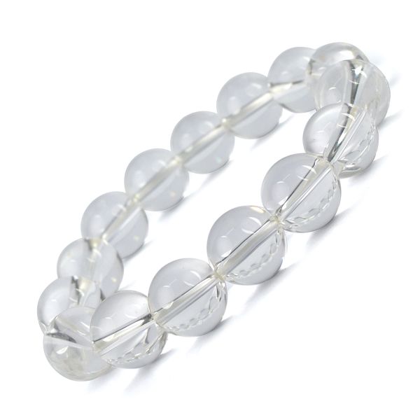 * Stretchable Elastic Handmade Natural Crystal Stone Bracelet | Diameter: 6.3 cm. | Stone Size - 12 mm. Round Beads
