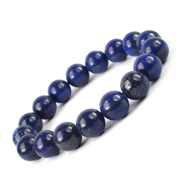 * A lapis lazuli bracelet characterized by their deep blue color and golden flecks of pyrite. This stone is often associated with wisdom, truth, and self-expression, making it a powerful tool for enhancing communication and insight. Lapis lazuli is also believed to promote inner peace, stimulate intellectual ability, and encourage self-awareness, making it a popular choice for those seeking personal and spiritual growth.