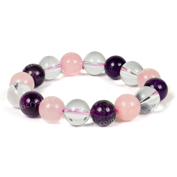 *A rose quartz bracelet symbolizing love, compassion, and emotional healing. It is often worn to attract love, foster self-love, and promote harmony in relationships. The soft pink color adds a soothing and gentle energy to its wearer./ Amplification of Energy: Known as the "Master Healer," Clear Quartz is believed to amplify the energy of other crystals and intentions. Use this bracelet to enhance the positive energy around you and promote overall well-being.