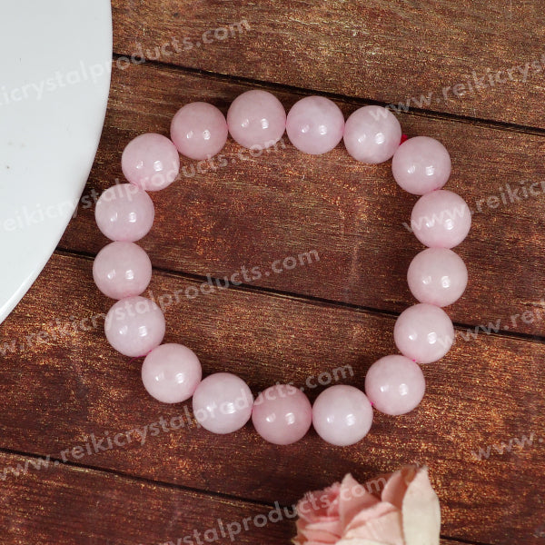 * A rose quartz bracelet symbolizing love, compassion, and emotional healing. It is often worn to attract love, foster self-love, and promote harmony in relationships. The soft pink color adds a soothing and gentle energy to its wearer.