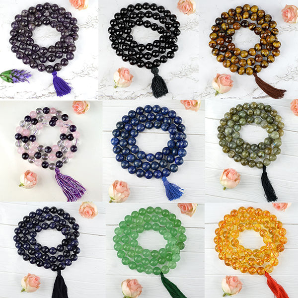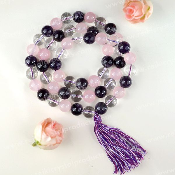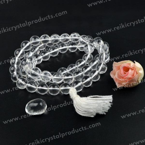 * Natural Handmade Crystal Stone Mala/Necklace | Length : 66 cm | Number of Beads : 58 | Shape : Round Beads | Stone Size : 12 mm. * Energized by Experienced Reiki Grandmaster.* The Mala is made from natural stones so small holes, crack marks on the surface or inside the stones are often visible.* Note: The Crystal Stone Mala is a spiritual accessory, and its perceived impact is often rooted in personal belief and intention.