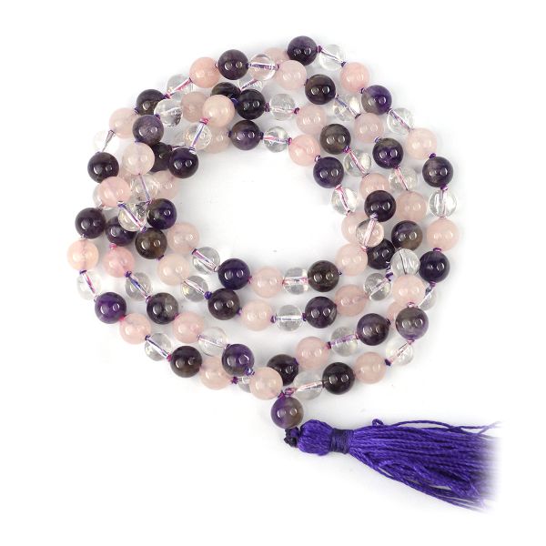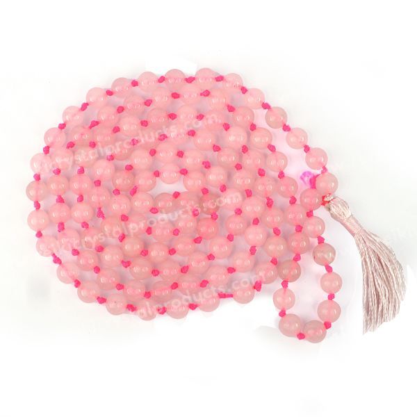 * Hand Made Natural Crystal Stone Mala / Necklace | Length : 81.2 cm. | Stone Size - 8 mm Round Beads | Number of Beads 108