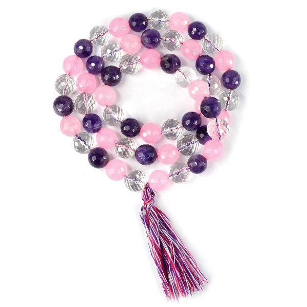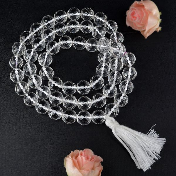* Natural Handmade Crystal Stone Mala/Necklace | Length : 66 cm | Number of Beads : 58 | Shape : Faceted Beads | Stone Size : 12 mm. * Energized by Experienced Reiki Grandmaster.* The Mala is made from natural stones so small holes, crack marks on the surface or inside the stones are often visible.* Note: The Crystal Stone Mala is a spiritual accessory, and its perceived impact is often rooted in personal belief and intention.