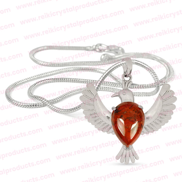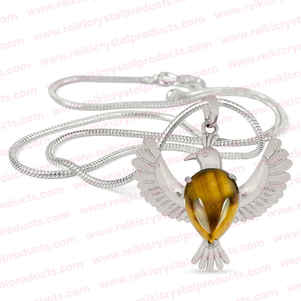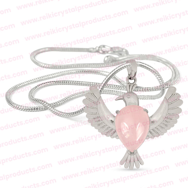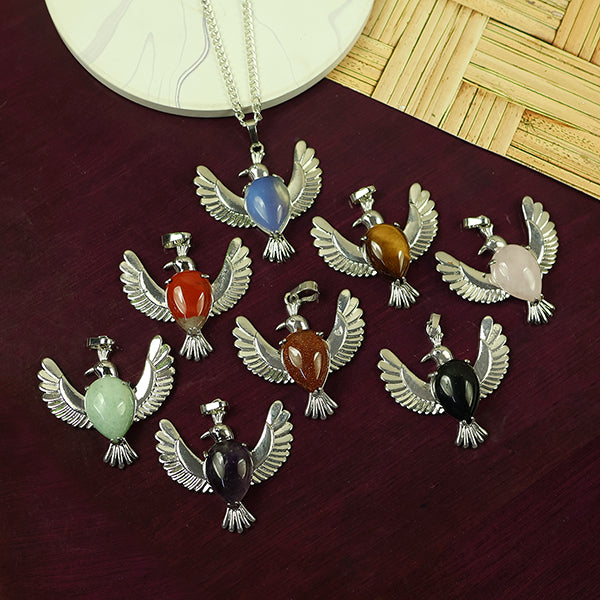 Natural Crystal Stone Bird Shape Pendant | Length : 45 mm | Width - 40 mm . Pendant Charged By Reiki Grand Master & Vastu Expert