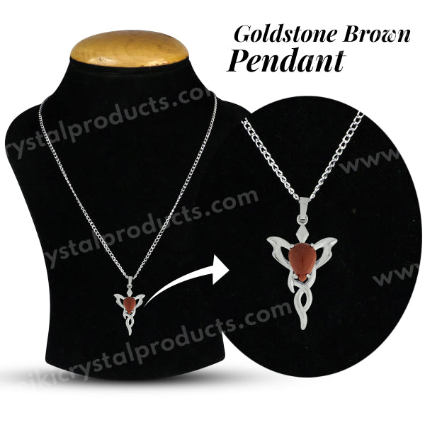 Natural Goldstone Brown Crystal Stone Pendant Butterfly Shape | Length : 45-50 mm | Width - 20-25 mm . Pendant Charged By Reiki Grand Master & Vastu Expert